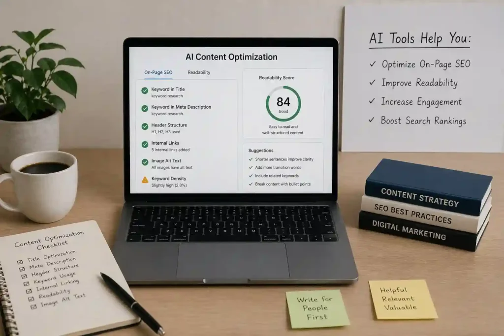 AI tools help improve readability by analyzing sentence structure, tone, and clarity. They suggest simpler wording, better formatting, and proper grammar to make content easier to understand. This increases user engagement and keeps readers on the page longer. AI also recommends adding headings, bullet points, and relevant keywords to improve flow. Engaging content not only attracts more visitors but also reduces bounce rates. By using AI, businesses can create content that is both SEO-friendly and enjoyable for readers, improving overall performance and user satisfaction consistently.