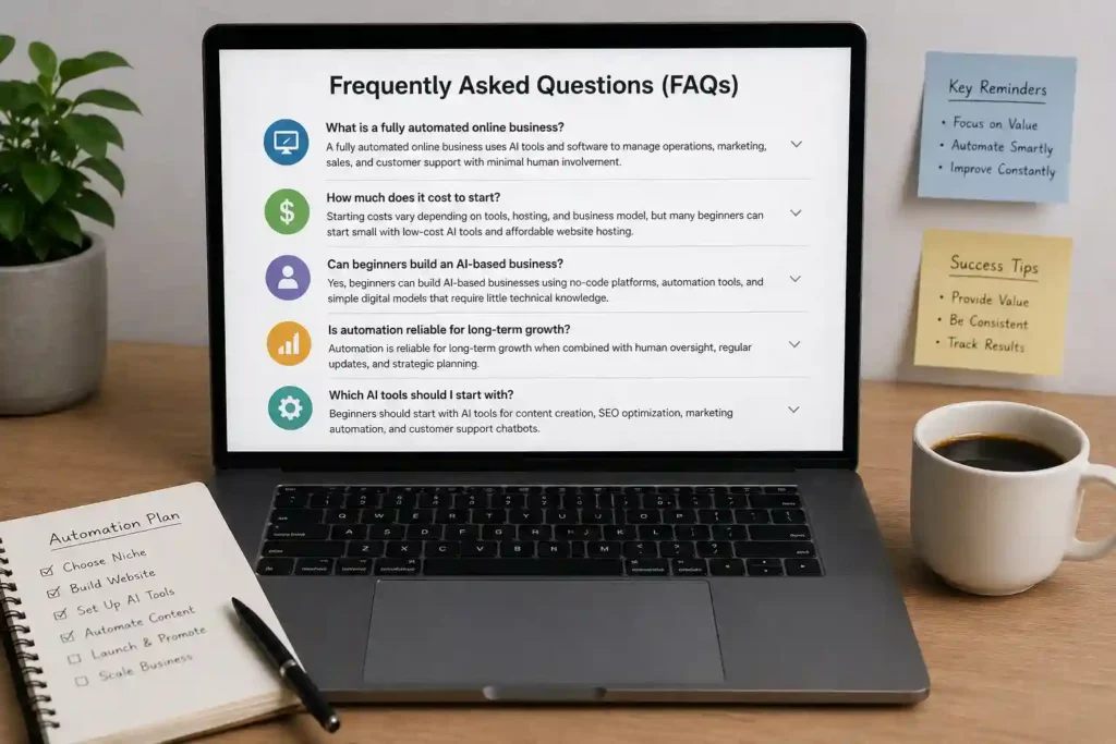 A fully automated online business is a digital system that uses AI tools and software to manage operations, marketing, sales, and customer support with minimal human involvement required.