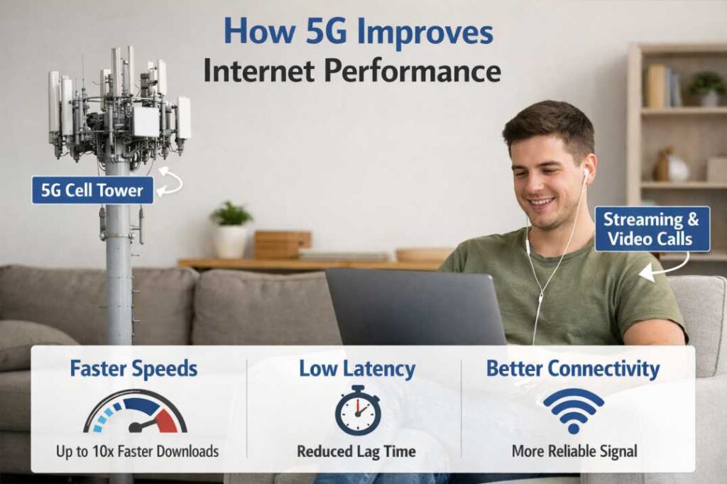 5G significantly enhances internet performance by delivering faster speeds, smoother streaming, and more reliable connections.