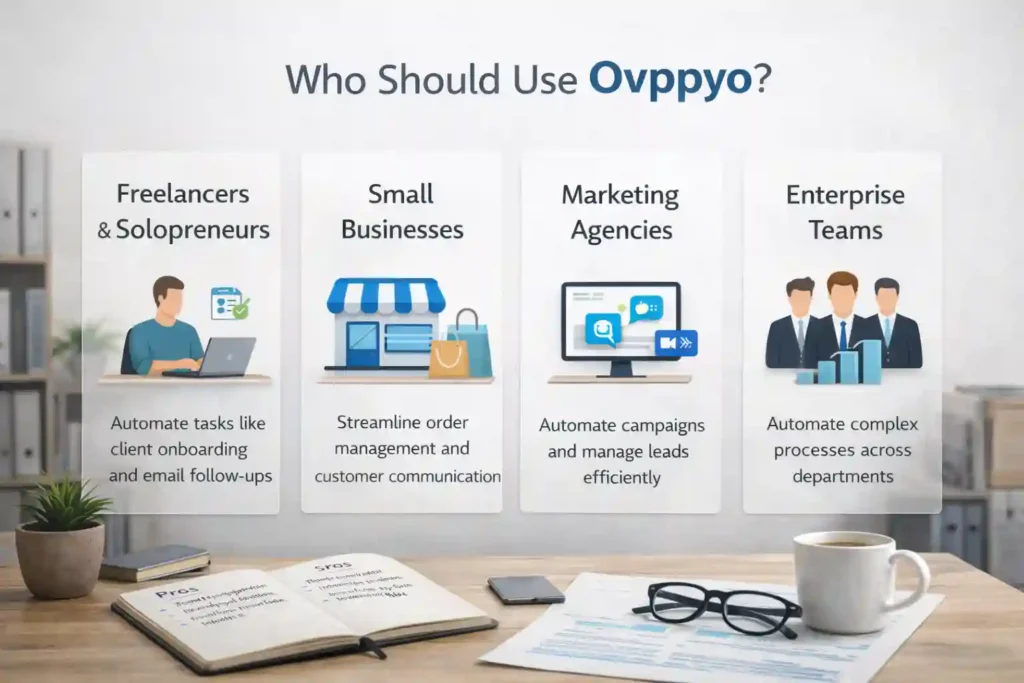 Ovppyo is an excellent solution for freelancers and solopreneurs who need to manage multiple tasks without hiring extra help. By automating repetitive activities like client onboarding, email responses, and task tracking, individuals can focus more on creative and revenue-generating work. It simplifies daily operations and helps maintain consistency, which is essential for building a professional workflow.