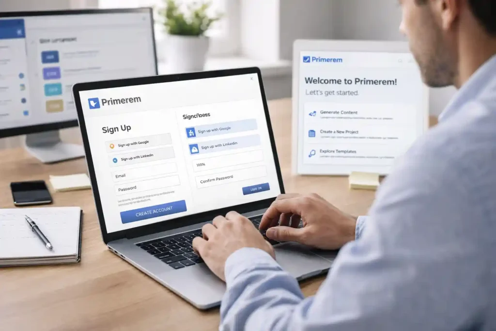 Getting started with Primerem is simple. Users can sign up directly on the platform using an email address, Google account, or social media credentials. Once registered, users gain access to the dashboard, where they can explore key features and customize their workspace. The signup process is designed to be quick, allowing new users to start creating and managing content without delays. Primerem also provides an intuitive interface that guides first-time users through essential setup steps, making it easy to get started regardless of technical experience.