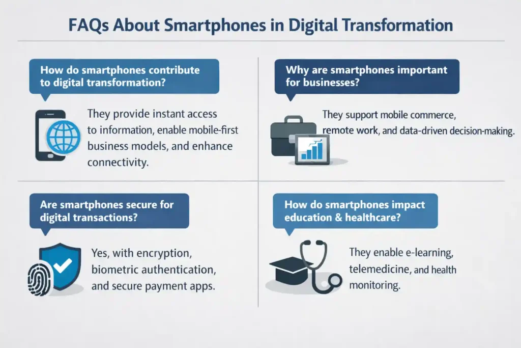 Smartphones have become indispensable in the ongoing digital transformation. From education and healthcare to business and e-commerce, these devices empower individuals and organizations to operate efficiently, stay connected, and make data-driven decisions. With evolving technologies such as 5G, AI, and IoT, smartphones will continue to expand their role, shaping the future of a digitally connected world. Their versatility, accessibility, and innovative capabilities make them central to the progress and success of digital transformation in every sector.
